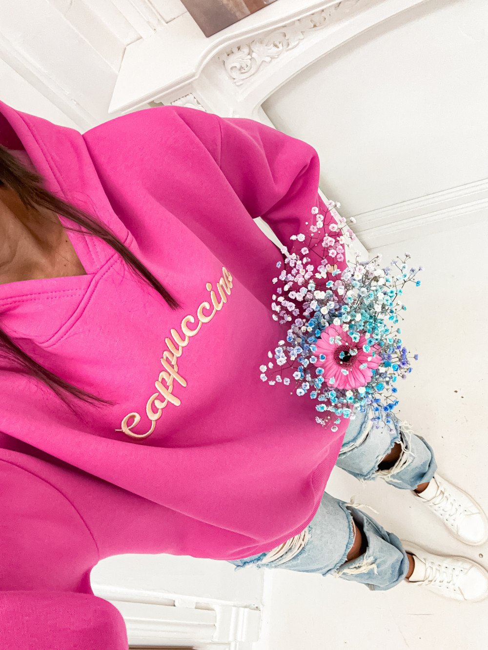 Būkite pirmas aprašęs “Džemperis su gobtuvu ir siuvinėtu kapučino užrašu”