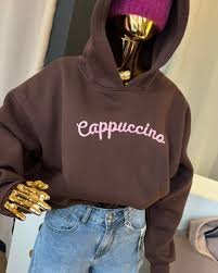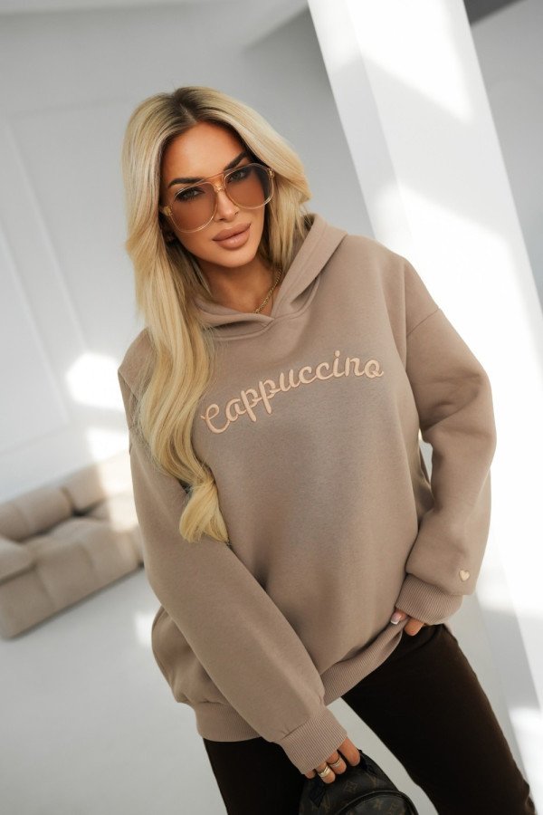 Džemperis su gobtuvu ir siuvinėtu kapučino užrašu
